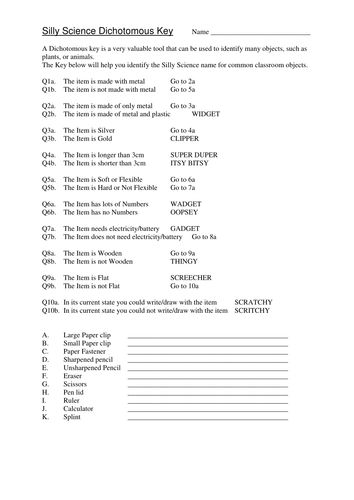 A dichotomous keyis a listing of specific characteristics, such as structure and behavior, in such a way that an organism can be identified through a process of elimination. Free printable science worksheets word lists and activities. Jun 15, 2018 · 7th grade science dichotomous key worksheet answers pdf. Some of the worksheets for this concept are dichotomous keys, making a dichotomous key work, dichotomous key practice, dichotomous key activity, jelly bean dichotomous key activity, candy dichotomous key procedures, learn how to use a dichotomous key, activity one classification with a dichotomous key. Describes dichotomous keys examples of dk s thinglink dichotomous key meaning and pronunciation, dichotomous key maker app, dichotomous key for mythical animals answers, dichotomous key quiz questions, dichotomous key biology worksheet, , image source: